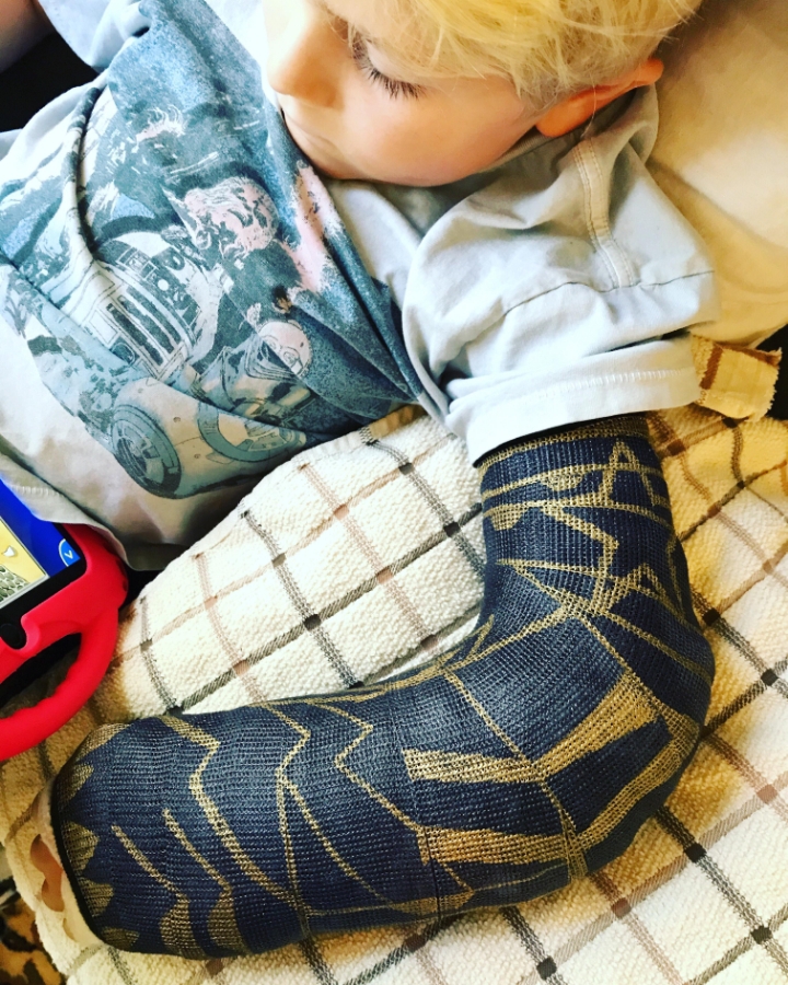 하얗고 초록색의 때탄 깁스들