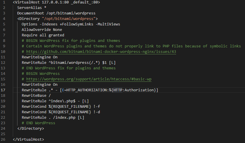 Bitnami는 보안상의 이유로 .htacces 파일을 읽지 않고 있습니다.