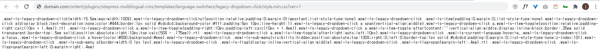 제안된 유일한 해결 방법은 템플릿 파일(/sitepress-multilingual-cms/templates/language-switchers/legacy-list-vertical/style.css?ver=1)을 테마에 복사하고 거기에서 로드하는 것입니다.