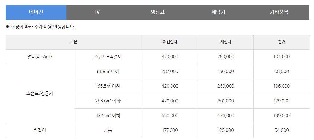 | 기본 ((설치)멀티에어컨/1개) | 260,000 원 |